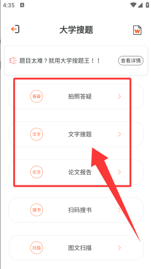 而且它還為大學生提供掃碼搜書、圖文掃描、大學搜題、大學生作業答案交流社區等大學生活學習工具。