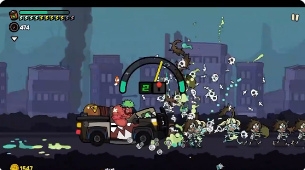 2、小分隊隊員駕駛車輛開始移動,粉碎沿路的僵尸,一路冒險闖關,獲取豐富的金幣。